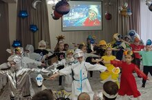 Играли в космонавтов, читали стихи, спели песню и танцевали под зведным небом.