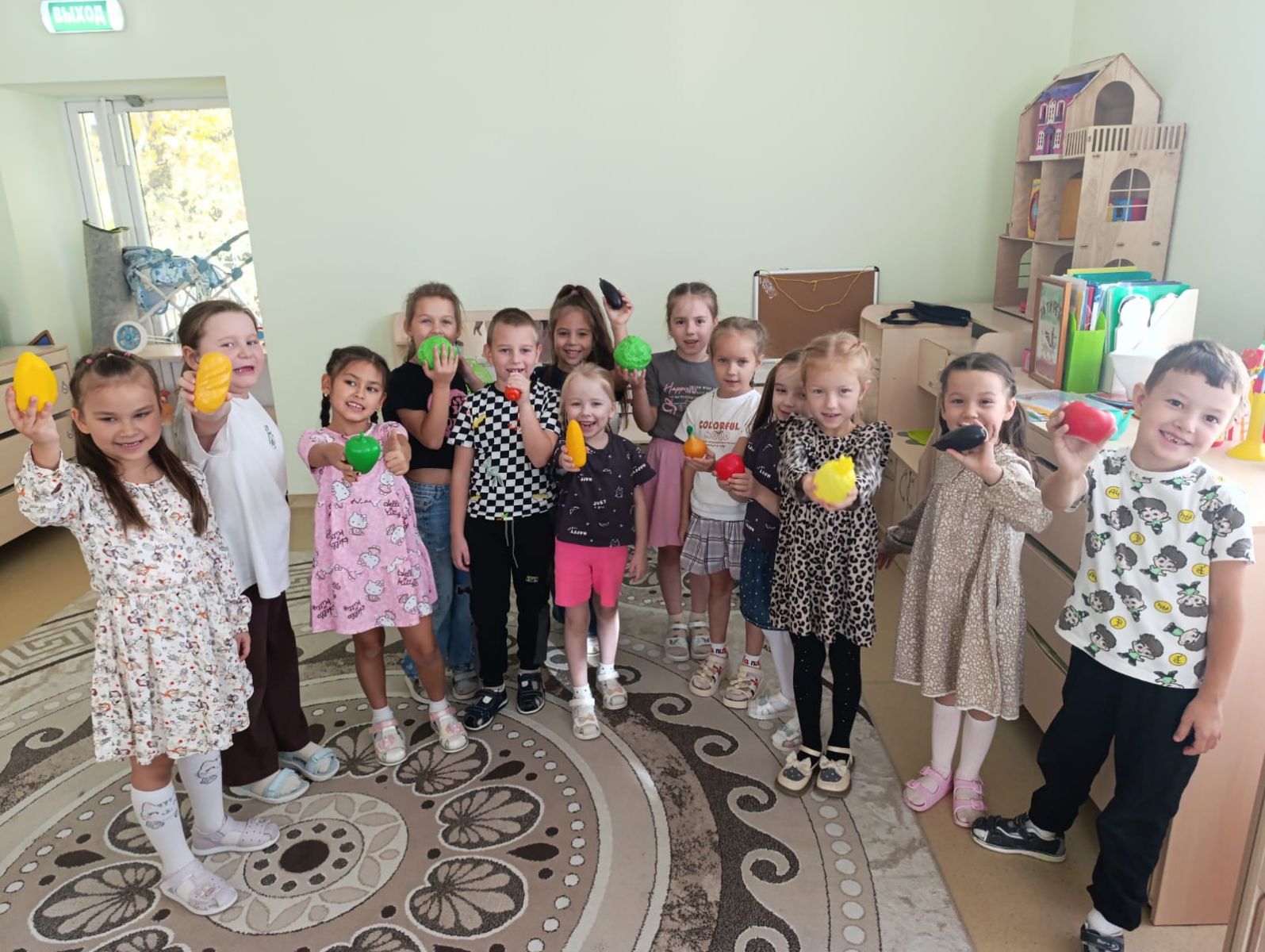 Во время занятия воспитатель рассказывал детям о пользе овощей для здоровья, объясняя, почему важно включать их в рацион питания. Ребята узнали, что морковь богата витамином А, картофель является источником углеводов, помидоры содержат много витаминов и антиоксидантов, а огурцы помогают поддерживать водный баланс организма.