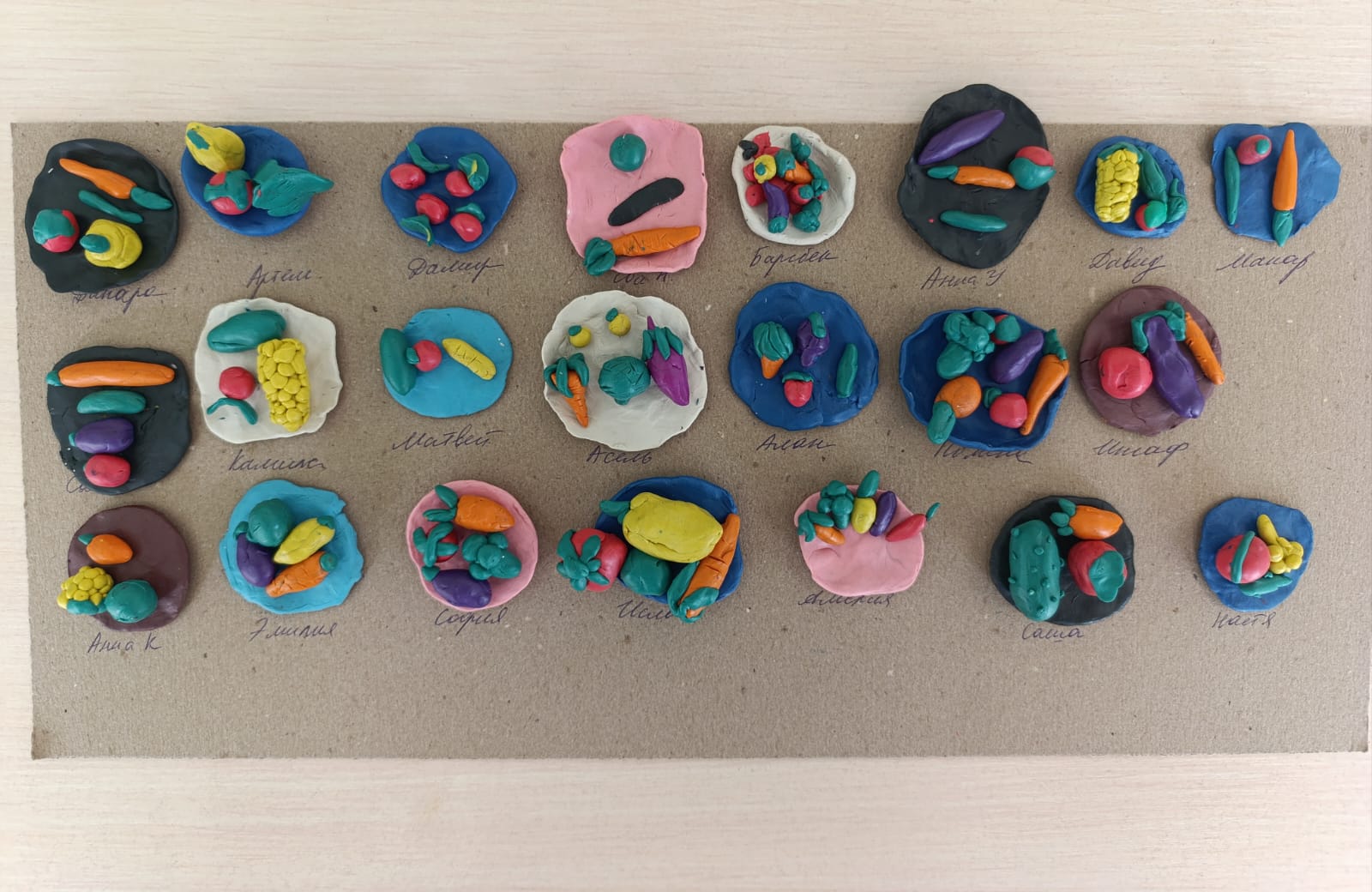 В подготовительной группе дети лепили овощи на тарелке, используя пластилин разных цветов. Это занятие помогло ребятам развить мелкую моторику рук и творческие способности. Они создавали разнообразные формы моркови, картофеля, помидоров и огурцов, стараясь передать особенности каждого овоща.