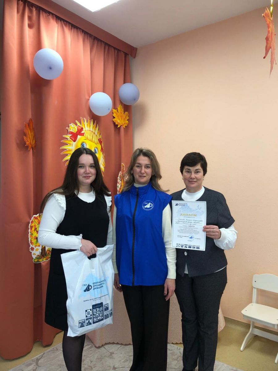 Ведущий специалист отдела профилактики ГБУ «Безопасность дорожного движения» Газизова Айгуль Зуфаровна наградила педагогов детского сада №268 за участие в районном онлайн-конкурсе открыток по пропаганде БДД "Регулировщик-главный на дороге" среди педагогов и родителей воспитанников дошкольных образовательных организаций Авиастроительного района г. Казани.