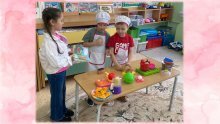 Не секрет, что рано или поздно все дошкольники начинают примерять на себя профессии взрослых и делают они это с помощью сюжетно-ролевых игр. В сюжетно-ролевых играх отражаются представления детей об окружающем мире, взаимоотношениях и профессиональных обязанностях людей. Сюжетно-ролевая игра не только развлекает ребенка, но и является элементом образовательного процесса в детском саду. Так, с целью расширения представления детей о труде работников кафе, для формирования культурного поведения в общественных местах, в старшей группе «Родничок» дети организовали игру "Кафе". Дети сами выбирали себе роли: поваров, официанта, посетителей. Ребята закрепляли знания об овощах, фруктах, продуктах питания, посуде, показывали своё умение пользоваться столовыми приборами. -