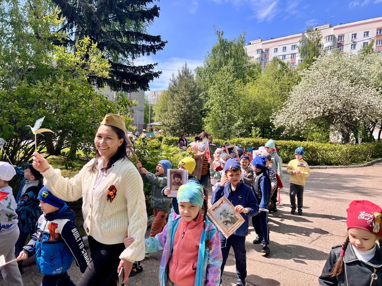 Сегодня в детском саду прошел праздник, посвященный 80-летию Победы в Великой Отечественной войне. День Победы один из самых почитаемых праздников в нашей стране. 9 мая 1945 года уходит все дальше и дальше от нас, но мы по – прежнему помним, какой ценой досталась эта победа нашему народу, как любили, берегли и защищали ее наши предки, наши отцы и деды. Нельзя, чтобы наши дети забывали об этом. В программу утренника вошли стихи о войне, песни, танцы. После праздника состоялось шествие Бессмертного полка.
