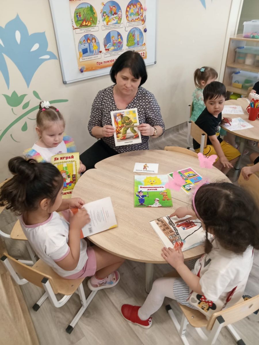 В детском саду проводятся занятия по культуре безопасности в рамках открытого урока, посвященного Году защитника Отечества и 80-й годовщине Победы в Великой Отечественной войне 1941-1945 годов, Дню пожарной охраны. Также в течение месяца проходили мероприятия по формированию основ безопасного поведения во всех группах.