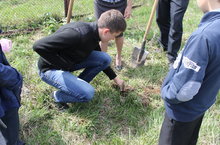 11 мая на территории школы учащиеся 11а и 1б кл. провели акцию по высадке саженцев голубых елей "Аллея памяти".