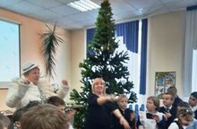 Сегодня праздник у новогодней елки прошел для ребят 7-8 классов. Дедушка Мороз порадовал всех сладкими подарками.