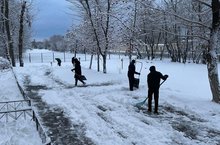 Сегодня воспитанники "воскресной группы" провели трудовой десант по уборке дорожек территории школы-интерната от снега.