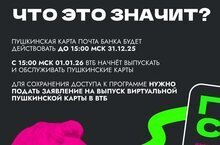 С 1 января 2026 года банком-оператором программы «Пушкинская карта» станет ВТБ. Пушкинская карта от Почта Банка будет действительна только до 15:00 31 декабря текущего года.