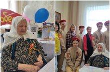 Садретдинову Минегаян Зияфетдиновну - ветерана тыла Юнармейцы поздравили с 96-летием и с наступающим праздником Днём Победы и пожелали здоровья, благополучия, весеннего настроения и всего самого хорошего