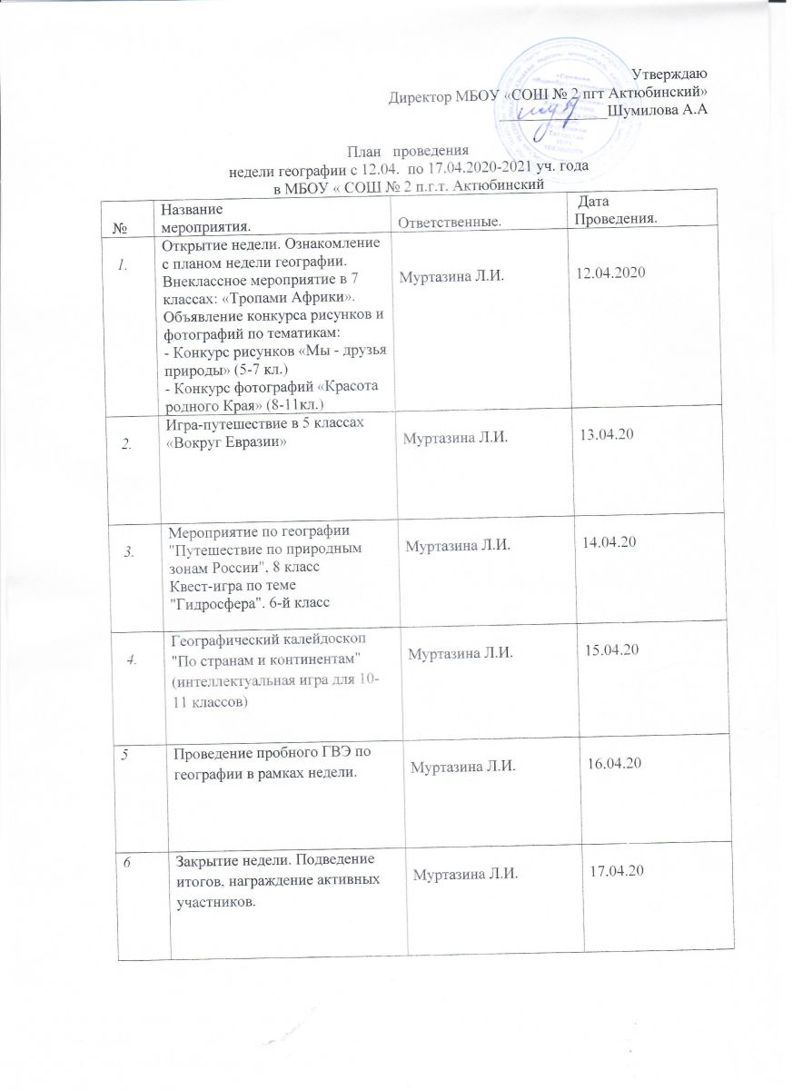 План проведения марафона предметной недели географии с 12 по 17 апреля 2021 года⇒