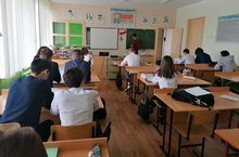 Просмотр документального фильма в 9 Б классе про полёт Ю.Гагарина в космос.