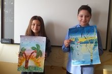 В подарок на день пожилых ученики 5в класса Гаязова Азалия и Султангареев Данил приготовили свои картины. Пусть радуют и дарят тепло творения детей!