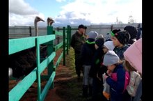 Экскурсия 4В класса на единственную страусиную ферму юго-востока Республики. Фермеры вырастили завезенных 30 см африканских страусят до птиц-гигантов. Ребята и родители с удовольствием слушали рассказ экскурсовода о длинноногих двухметровых обитателей фермы.