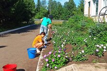 Ежегодно в период летних каникул обучающиеся школы принимают участие в летней практике. Ребята 5 класса трудятся с пользой и хорошим настроением: пропалывают грядки, рыхлят землю, поливают растения в теплице, на клумбах и грядках.Труд на участке прививает детям полезные навыки.
