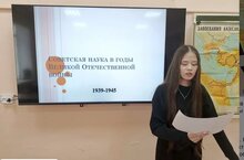 Сегодня в рамках недели истории учащиеся 10 класса подготовили доклад на тему: учёные-историки в годы Великой Отечественной войны. Когда мы думаем о войне, мы представляем солдат, сражающихся на фронте, партизан, тружеников тыла. Но не менее важную роль играли и те, кто работал в тылу, кто своим умом и знаниями помогал стране победить. Победа в великой войне была во многом достигнута благодаря развитию науки и созданию новых совершенных технологии, учёные внесли огромной вклад в решении проблем обонооспособнотюсти нашей армии.