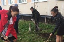 На территории школы учащиеся посадили деревья.