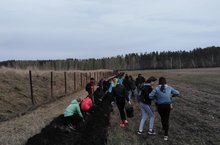 Сегодня учащиеся 8 класса участвовали в посадке леса.