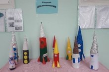 Учащиеся 4 классов сделали макеты ракет и сделали выставку работ на День космонавтики.