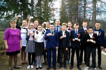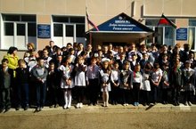Сегодня прошёл Флешмоб День Победы, на котором учащиеся школы исполнили гимн Победы "День Победы".