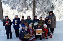 Бүген 2 сыйныф укучылары ясаган җимлекләрен мәктәп бакчасына элделәр һәм кошларга азык салдылар.