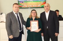 За участие в республиканских творческих конкурсах правового направления , результативное сотрудничество в деле формирования правовой культуры, профориетационного воспитания и профилактики правонарушений среди учащихся, глава района М.З. Шайдуллин на еженедельном совещании руководителей наградил грамотой учителя истории Альбину Салаватовну.