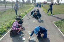 "Яшел Россия" акциясе кысаларында 4 нче сыйныф укучылары бүген паркта асфальта рәсем ясау конкурсында катнаштылар.
