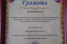 Наша школа заняла 2 место среди учреждений посёлка в конкурсе "Лучшее Новогоднее оформление фасада здания и прилегающей территории ". Поздравляем!!!