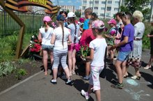 Сегодня мы были в парке, возложили цветы к памятнику ВОВ.