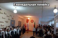Безнең мәктәптә яңа атна гадәттәгечә линейкадани һәм Россия Федерациясенең Дәүләт флагы күтәрелүдән һәм Россия Федерациясе Гимнын башкарудан башланды.