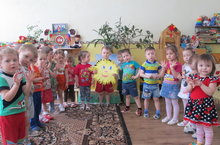 Дети I младшей группы все вместе выполнили аппликацию из ладошек «Солнышко». Солнышко повесили в раздевалку на видное место, чем дети очень гордятся. Через несколько лет будет интересно посмотреть, какие маленькие были ручки у детей.