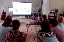 25 сентября в нашем детском саду состоялся семинар-практикум на тему: “Использование мультимедийных технологий при внедрении УМК.” Семинар-практикум посетили воспитатели и преподаватели ДОУ. Хисамова Г.М. поделилась опытом использования мультимедийных технологий на занятиях по татарскому языку. Воспитатели, в свою очередь, согласились, что использование видеофильмов и мультимедийных технологий дают возможность повысить степень активности детей,обогащают процесс обучения. Так же педагоги получили практический урок по использованию мультимедийных технологий, закрепили технику безопасности при их использовании