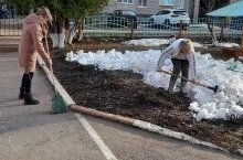 Санитарная очистка прилегающей территории. / Янәшәдәге территорияне санитар чистарту. 10.04.2023
