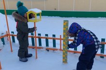 Мәктәпкә әзерлек төркемендә тәрбияләнүчеләр кар калынлыгын үлчиләр һәм кошларны ашаталар. Күрсәткечләр күзәтү көндәлегендә күрсәтелә.