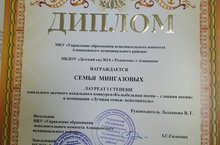 Семья Мингазовых стали Лауретами 1 степени в Зональном заочном вокальном конкурсе "Колыбельная песня - главная песня" в номинации "Лучшая семья - исполнитель", среди дошкольных образовательных учреждений. ПОЗДРАВЛЯЕМ!