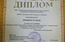Наша воспитанница Ярмиева Рузиля стала Лауреатом 2 степени в Зональном заочном вокальном конкурсе "Колыбельная песня - главная песня" в номинации "Детская колыбельная", среди дошкольных образовательных учреждений. ПОЗДРАВЛЯЕМ!