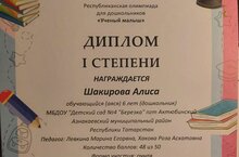 Результаты участия наших воспитанников в Республиканской олимпиаде для дошкольников "Ученый малыш"