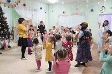 Новый год – время исполнения заветных желаний, и для детей ожидание новогоднего праздника связано с предвкушением волшебства от встречи с Дедом Морозом и Снегурочкой. Дети старшей группы пришли на представление нарядные, веселые в предвкушении праздника. И их надежды оправдались. Педагоги, участвовавшие в новогоднем представлении, проявили себя хорошими артистами, показав все свое творческое мастерство, артистизм, задор и организаторские способности. С самого начала новогоднее представление увлек детей в мир сказки. Дети сочувствовали положительным героям и стремились все вместе им помочь, охотно участвуя в играх и забавах. С появлением Деда Мороза начался настоящий праздник с песнями и танцами, хороводами вокруг елки.