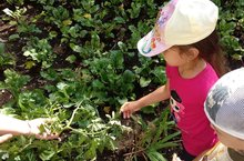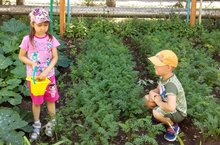 В нашем детском саду, как и во многих других, есть огород. Наличие огорода в детском саду даёт возможность познакомить детей с таким понятием, как «сельскохозяйственный труд». Дети знакомятся со спецификой работы по выращиванию овощных культур, узнают, что получение конечного результата невозможно без ряда последовательных трудовых процессов (сначала надо подготовить землю, потом посеять семена; чтобы они росли, их надо поливать, рыхлить землю, делать прополку и т. д.). Дети могут наблюдать за тем, как обрабатывают землю, за первичным развитием овощных культур, за изменениями в росте растений, знакомиться с отличительными признаками овощей, а главное, принимать посильное участие в уходе за огородом. В результате наблюдений и труда по уходу за растениями огорода дети начинают понимать, что землю вокруг растения надо окучивать – это придаёт ему большую устойчивость, но делать это лучше после дождя или полива, тогда почва будет сильнее прогреваться солнцем, лучше пропускать воду и воздух к корням. Ребята уже знают, что прополка нужна для того, чтобы сорняки, вредные растения не мешали росту овощных культур, не отнимали у них много воды, света и солнца. Наши ребята, особенно старшего дошкольного возраста, очень любят трудиться на огороде, им доставляет радость видеть результаты своего труда!