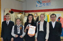 Ученики 7а класса Губайдуллина Камилла, Шарипов Ильмас, Сабиров Раиль, Дабихуллина Лейла награждены благодарственным письмом Азнакаевского краеведческого музея за активное участие в «Музейной весне Татарстана-2015», приуроченной 70-ой годовщине Победы в Великой Отечественной войне.