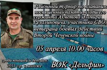 5 апреля 2025 года в водно-оздоровительном комплексе "Дельфин" прошёл турнир по плаванию, посвящённый памяти младшего сержанта Ахметова Эльмира Рузалиновича, участника специальной военной операции, ветерана боевых действий Второй чеченской войны.
