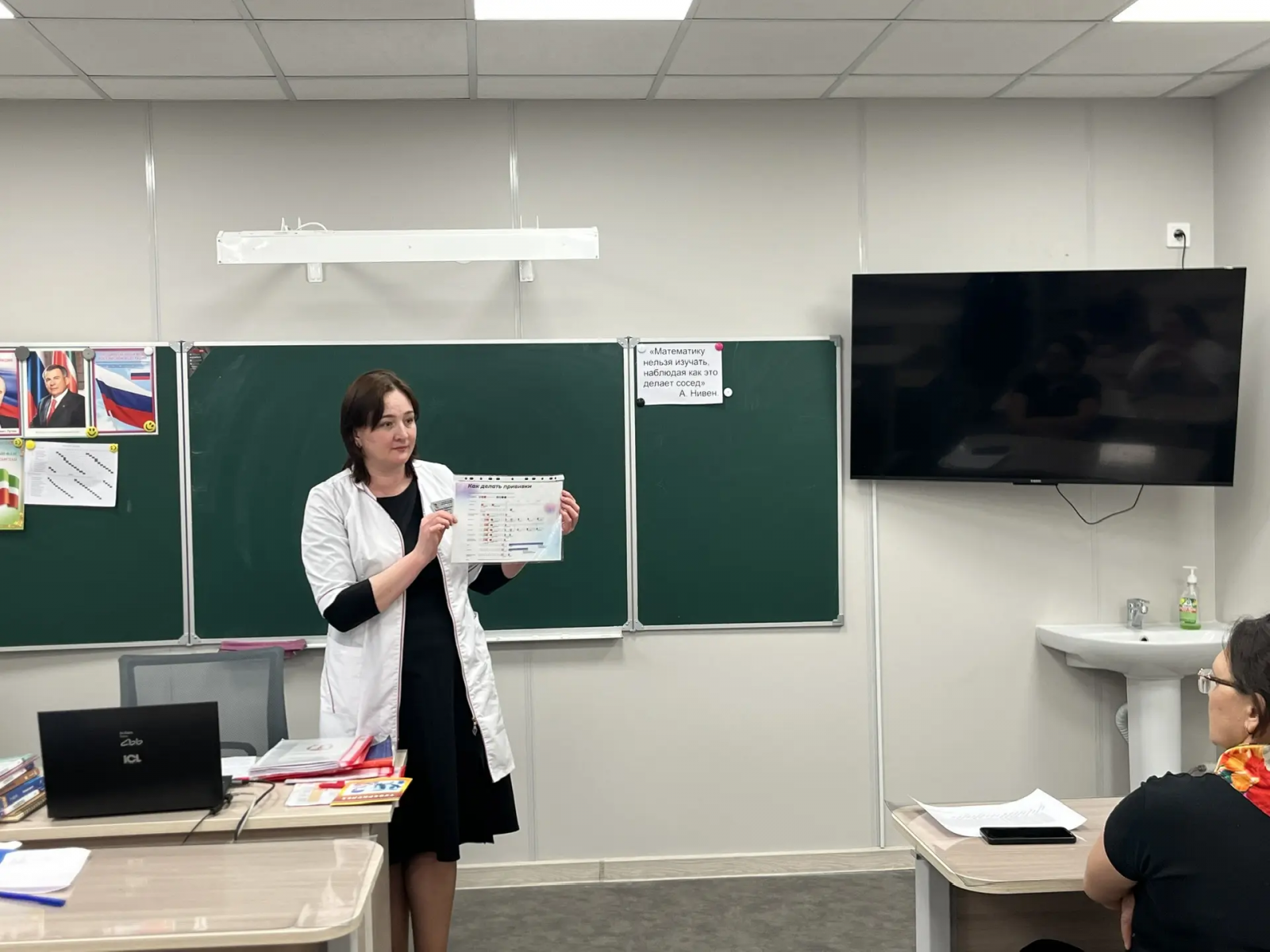 По проекту "Школьная медицина" на базе МБОУ СОШ √9 г. Азнакаево фельдшер школы Хасибулина А. И. Выступила на родительском собрании с темой:"Значение прививок", "Как поддержать иммунитет" и "Гигиена рук". Слушало 53 родителя.