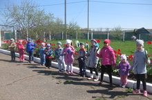 6 май көнне флешмоб “День победы” акциясе уңаеннан Карамалы башлангыч мәктәбе укучылары “Айгуль” балалар бакчасы берлегендә “День победы” җырын башкардык.