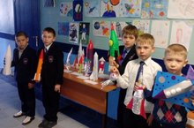 В день 55-летия со дня Первого полета человека в космос, в рамках акции «108 минут с Ю.А.Гагариным» учащиеся начальных классов приняли участие в конкурсе рисунков и макетов космических кораблей и ракет. -