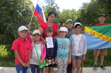 В преддверии Дня России воспитанники лагеря со своими вожатыми-участниками проекта «Самостоятельные дети» на улицах города раздавали текст Гимна России.