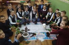 Ученики 4 А класса приняли участие в акции «Озеленяем свой кабинет»: подготовили смесь почвы, посадили черенки и отростки, полили.