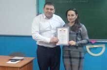 Награждение Дипломом призера муниципального конкурса в номинации «За освещение библиотечной жизни» и победителем в номинации «Традиционная книжная выставка» библиотекаря школы Султангировой А.М.