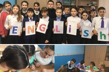 Просмотр мультфильмов на английском языке и веселые игры среди учащихся начальных классов.