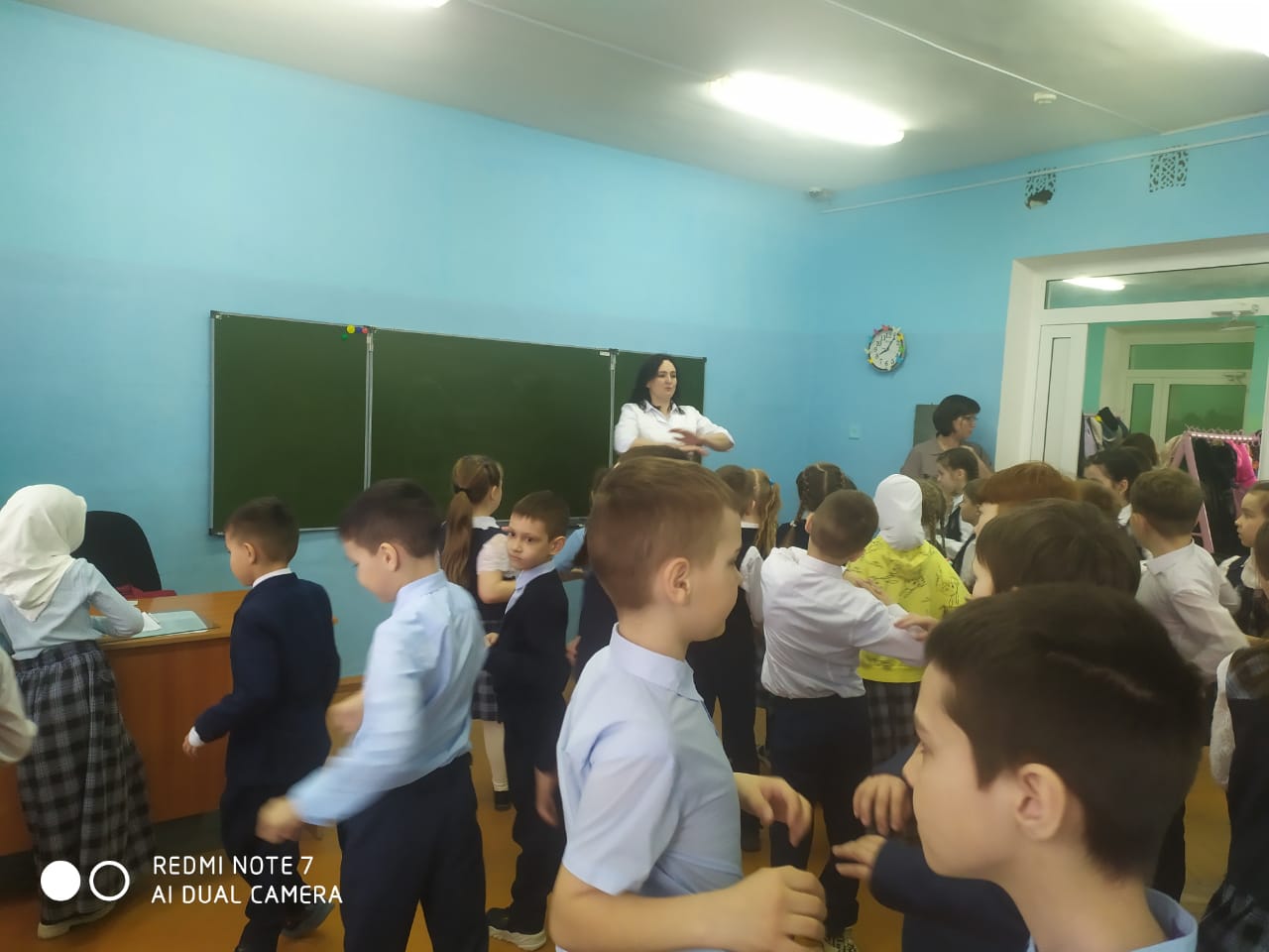 В младших классах проведена зарядка приуроченная ко Всемирному дню здоровья Города . Школа # 9 с фельдшером Хасибулина А. И. (В 1,2,3,4 классы) 96 учеников.