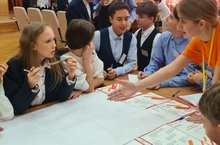 9 учащихся 6-7 классов с 1 по 3 ноября проходят практический тренинг "Бизнес-пректирование". По всей республике участниками стали 600 учеников (всего 5% от 12 тысяч), которые лучше справились с делеовой игрой проекта "Школьный бизнес-старт", и наши школьники - в их числе.