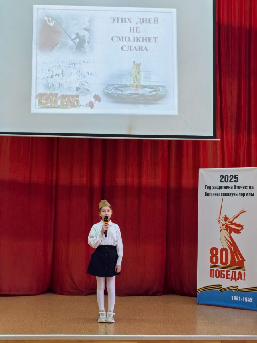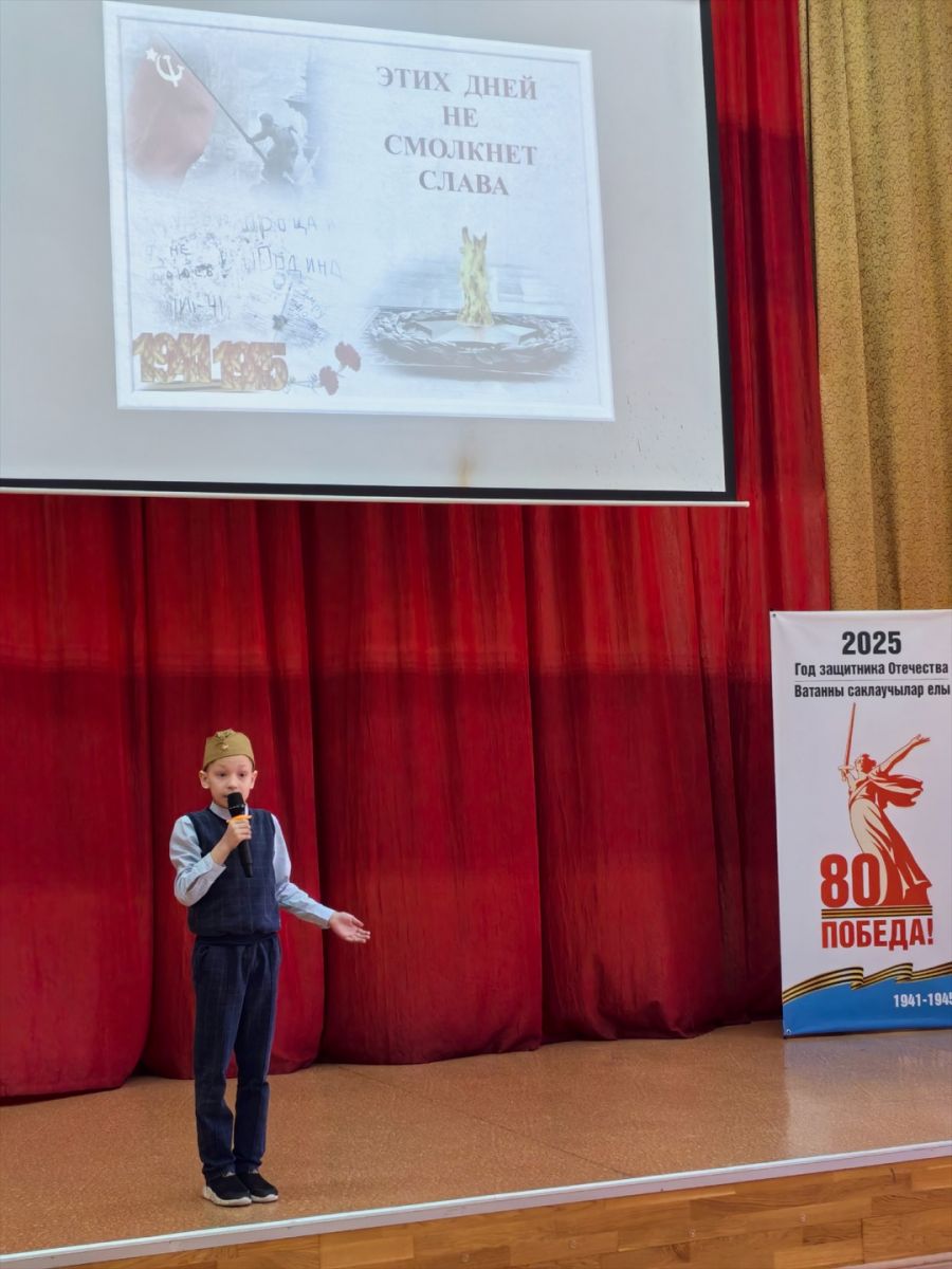 16 апреля 2025 года среди учащихся начальных классов состоялся конкурс чтецов "Этих дней не смолкнет слава!", посвящённый 80- летию со дня Победы в Великой Отечественной войне.18 учеников 2-4 классов приняли участие в Конкурсе чтецов. Ребята читали стихи о войне, героизме, стойкости и мире. Каждое выступление было пронизано глубоким уважением к подвигу наших предков.