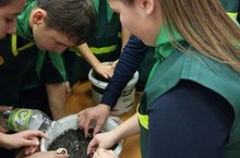 Ребята из кружка "Школьное лесничество" продолжают реализовывать исследовательский проект "От плода до деревца". Второй этап: посадка прорсших орехов каштана в грунт.